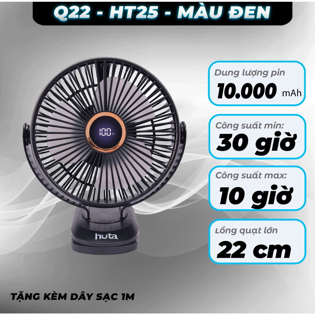 Dung lượng pin là yếu tố quan trọng, và với HUTA Q22, bạn sẽ không phải lo lắng. Quạt được trang bị pin trâu cho thời gian hoạt động dài, phục vụ liên tục trong nhiều giờ mà không cần sạc lại thường xuyên. Điều này đặc biệt quan trọng khi bạn cần quạt hoạt động cả ngày trong những ngày hè nóng bức. Một sản phẩm mang theo bên mình hay sử dụng ở những nơi không có nguồn điện ngay, chắc chắn sẽ khiến bạn yên tâm hơn về hiệu suất của nó.